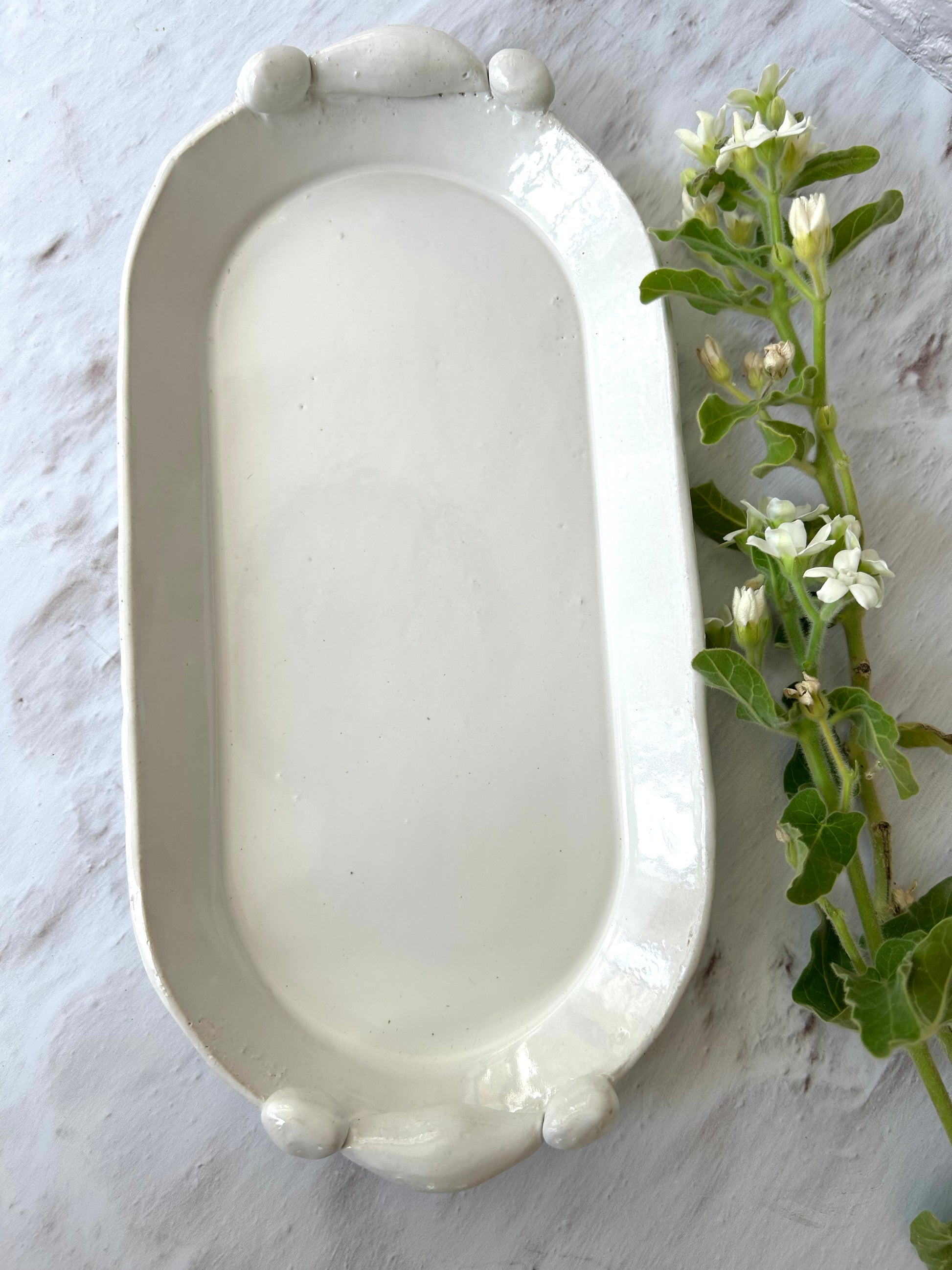 מגש אובלי, עשוי חימר לבן